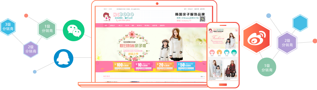 链接分销主要针对PC端,用户可以通过后台生成分销链接,分享到QQ空间、论坛、微博等大型社交平台,以实现裂变式分销